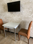 Обеденный стол, стулья, ТВ, Wifi, кондиционер, рабочий стол.
