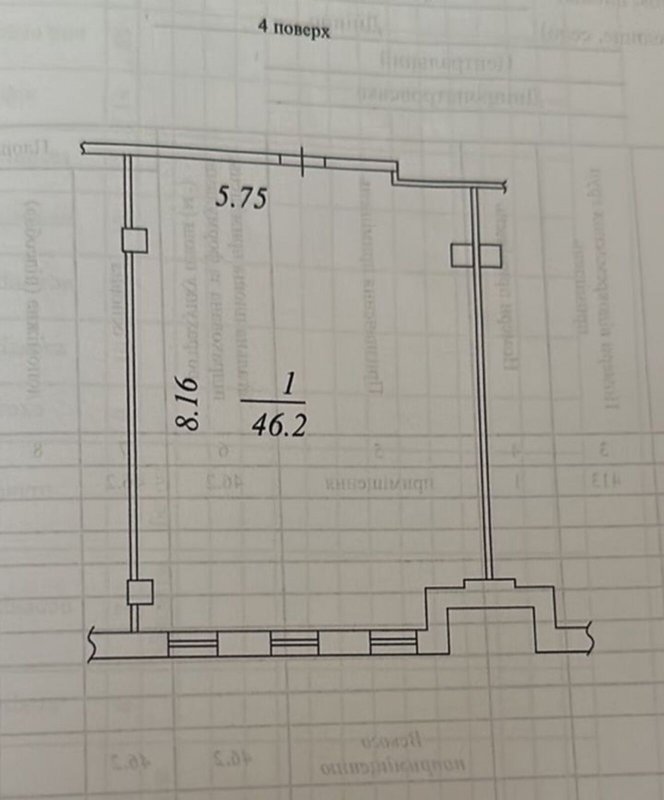 Площадь 46.2м2, просторное помещение без перегородок (open space). 4/5 этаж.