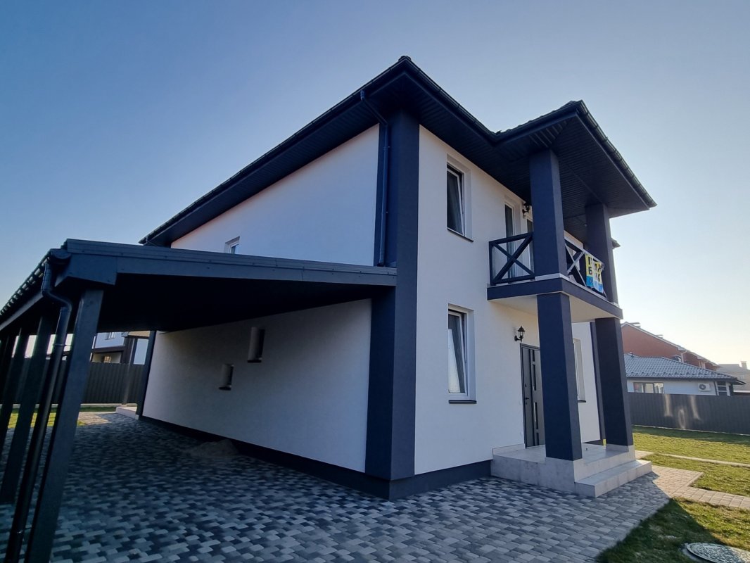 Продам 2 эт. дом 155 кв. м. в с. Новые Петровцы, массив ЯгодаПродам 2 эт. новый дом 155 кв. м. в с. Новые Петровцы, массив Ягода, ул. Лесная, построен из газоблока 30 см в 2022 году, утеплен 10 см пенопластом, крыша-металлочерепица пр. Словакия, утеплена 20 см минеральной ватой ватой, окна-немецкие стеклопакеты Salamandra. В доме 5 комнат без внутренней отделки -1 этаж (гостиная-кухня 45 кв. м. с выходом на террасу 27 кв. м., кабинет 12 кв. м., гардеробная 5.3 кв. м., с. у 7 кв. м., холл 5 кв. м., открытый навес на 2 авто 44 кв. м., 2 этаж-3 спальни 21.4 кв. м с гардеробной 7.1 кв. м. +17.2 кв. м. +17.2 кв. м., с. у 10.9 кв. м., балкон 5 кв. м.) Коммуникации-канализация септик, скважина 50 м, электричество Рэс 7 квт, 3 фазы, Земельный участок 7.5 соток под застройку, огорожен забором, положена тротуарная плитка, посажены туи, асфальтная дорога, 4 км г. Вышгород и 10 км г. Киев. Цена 125 000 у. е. Object typeHouse Name of cottage villagemassiv Yagoda Add Id662435 Add date30.01.2023 Renewal date26.04.2026 Share 125,000 $ Agent: Обирик Анжела Кирилловна Agency 'Украинская недвижимость' Message |