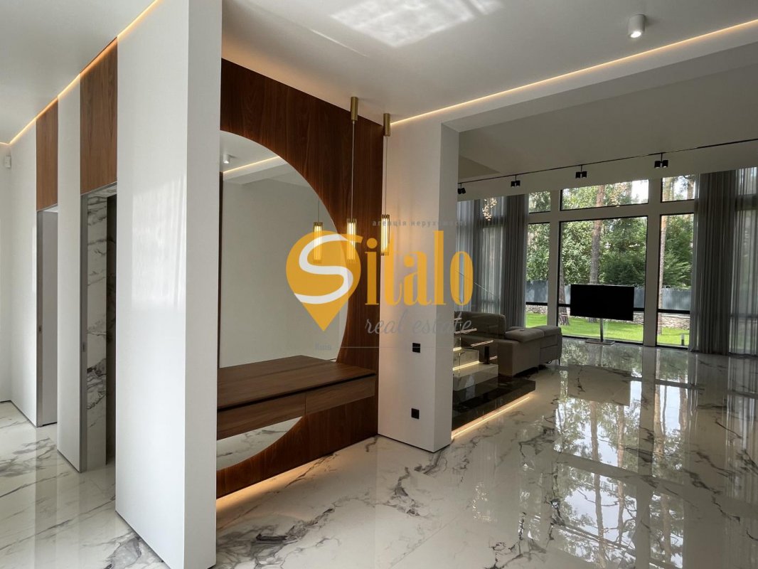 Опис Продаж 2-поверхового будинку в с.Плюти, Обухівського району. 18 соток, 350 м2, 120 м тераса, 6 с/в, камін, 3 гардеробні. Виконаний якісний ремонт, є необхідні меблі та побутова техніка, кондиціонери, тепла підлога, бойлер, генератор 17кВт, каналізація септик. Гарна локація,в лісі. На першому поверсі розташовані гостьова спальня зі своїм санвузлом та гардеробною кімнатою, кухня-їдальня, простора вітальня з каміном та виходом на терасу, гараж на два автомобілі. На другому поверсі - три просторі спальні, кожна з власним санвузлом та гардеробною, а також тераса з гарним краєвидом. Виконано дизайнерський ремонт з використанням високоякісних матеріалів. Встановлено панорамне скління та теплі підлоги по всьому будинку. Високі стелі та просторі кімнати підкреслюють характер сучасного заміського будинку. Деталі Котедж, 2 поверху, 5 кімнат. Матеріал стін - цегляно-монолітний, матеріал перекриттів - монолітний залізобетон. Під'їзд до будинку - асфальт. Площа ділянки 18 соток. Висота стелі 3.3 метра. Вид з вікон у двір. Планування кімнат Роздільне. Газ на вулиці. Холодна вода - свердловина, гаряча вода - електричний бойлер. Є опалення. У будинку 5 спільних санвузла, туалет/ванна/душ. Сантехніка в нормальному стані. Проведені. Сходи мармурові. Покриття підлоги - паркет. В будинку 2 балкони. Тип кухні - кухня-їдальня. Стіни шпалери. Своя каналізація. Загальний стан будинку - Дизайнерський ремонт. Поруч є школа, дитсадок, зупинки, розважальні заклади, супермаркет, парк, річка / озеро, ліс. Сантехніка в нормальному стані. Є автономна електроенергія - генератор. Інтернет оптоволоконний. Працює без світла - вода, опалення, інтернет, резервне живлення (акумулятори/генератор). Без комісії Object typeHouse Add Id755104 Add date24.06.2025 Renewal date16.04.2026 Share 1,150,000 $ Agent: Вікторія Ліваренко Agency 'Sitalo Real Estate' Message |