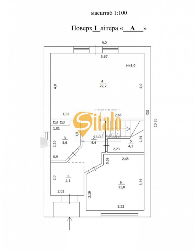 1 поверх: передпокій, санвузол, комора, гостьова спальня, кухня-вітальня з виходом на зону відпочинку.