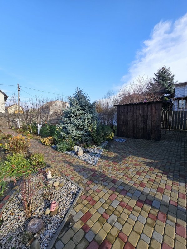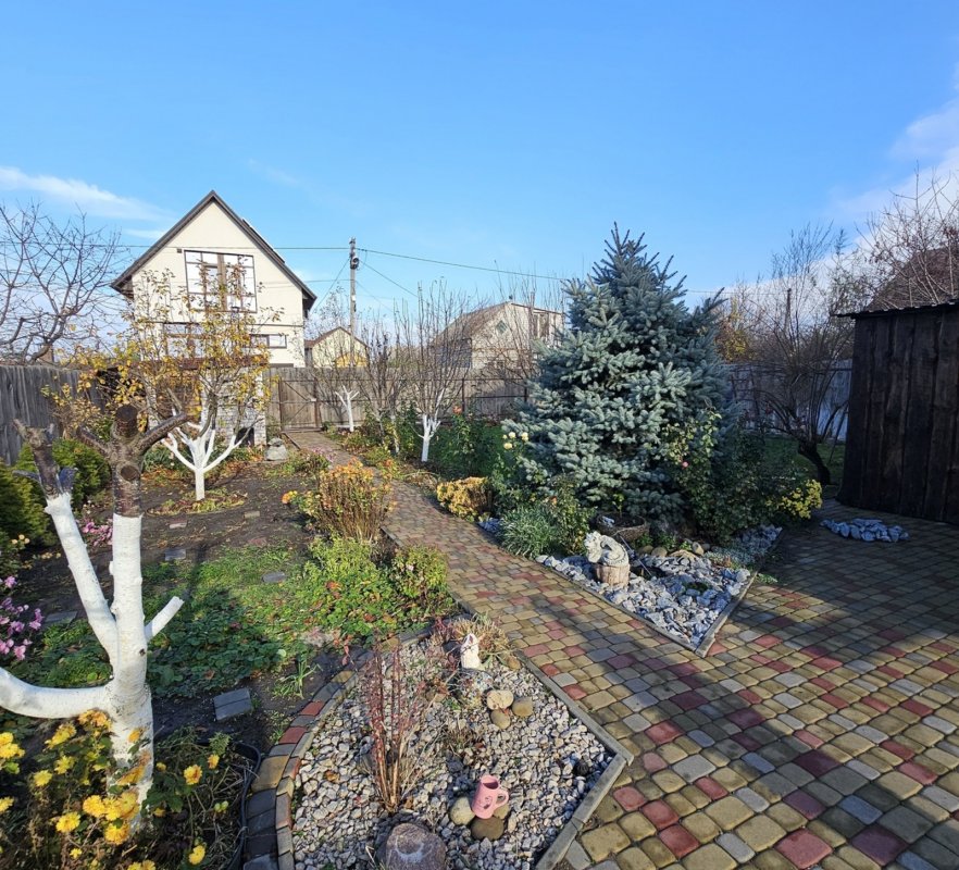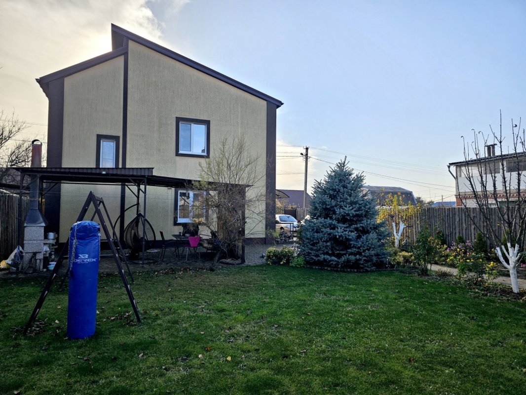 Участок 5 соток, ровный, прямоугольной формы, огорожен, автоматические ворота. На участке баня, мангальная зона под навесом, большой ухоженный двор с местами для парковки и сад с автополивом.