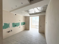 Состояние - под чистовую, черновые работы уже сделаны: индивидуальное газовое отопление, залита стяжка, кухня, коридор и с/у - плитка, теплый пол, разводка проводки, водоснабжения и канализации, подвесные потолки, санузел облицован плиткой, новая сантехника, стены отштукатурены и подготовлены под покраску или обои.