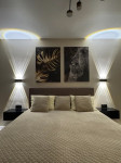 Площадь 64м2, 7/10 этаж. Спланирована как кухня студия, отдельная спальня, гардеробная.