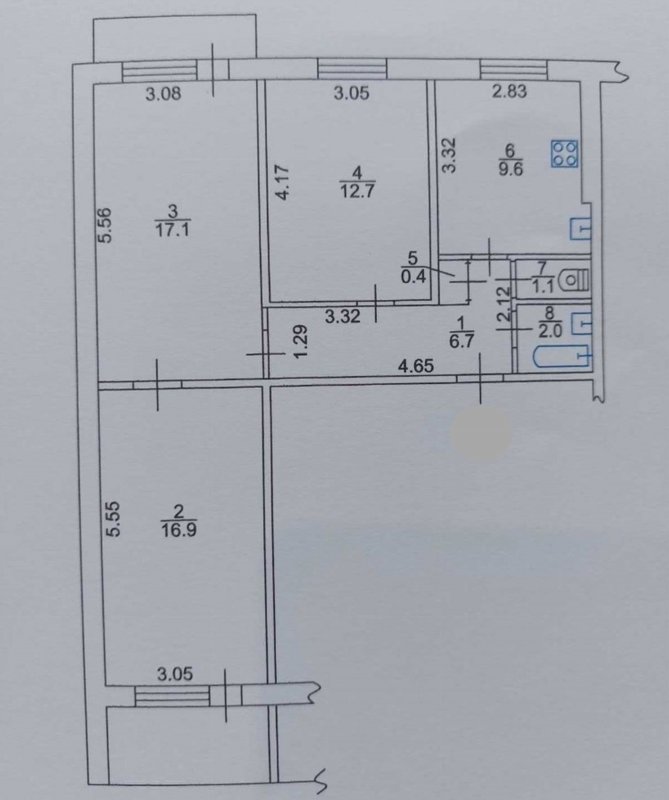 Площадь 73м2, просторные комнаты, 10-метровая кухня. Двухсторонняя, с лоджией и балконом. Состояние жилое без ремонта.