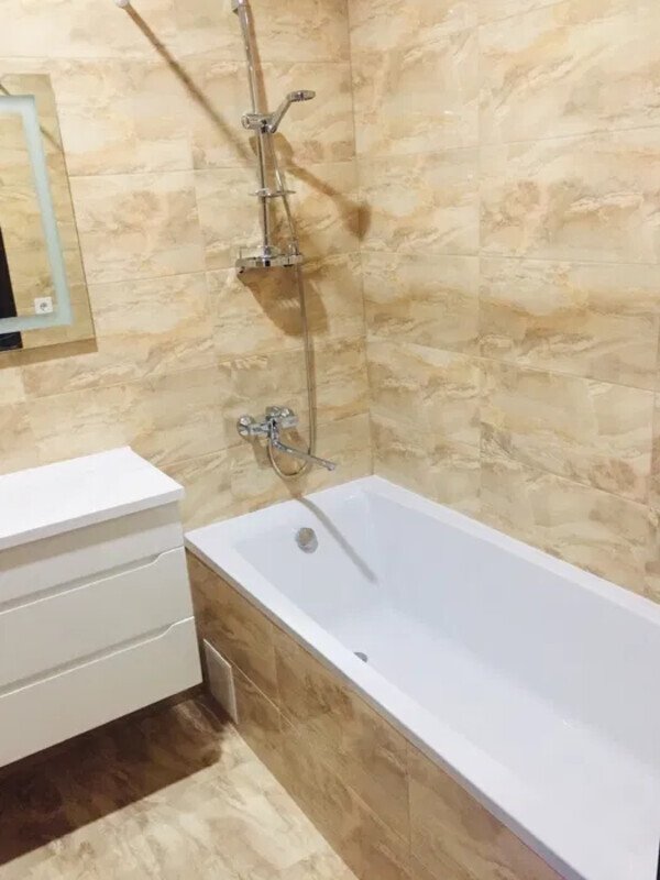 Ванная комната: - Ванная 180 см с душем - Метровая тумба с раковиной из искусственного камня -Зеркало с LED-подсветкой - Стиральная машина 6 кг с интуитивно понятным интерфейсом, функцией быстрой стирки (15 минут) и множеством других программ - Бойлер 80 литров - Электровытяжка
