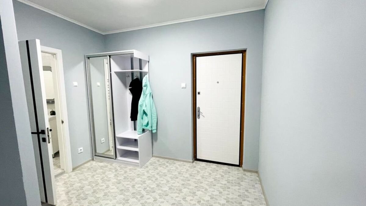 Просторный коридор, новая кухня, мебель.