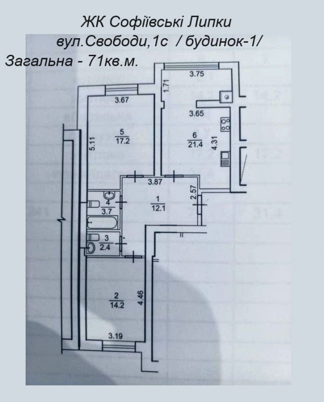 Продаж 2-кімнатна 71 кв. м. ЖК Софіївські ЛипкиЖК Софіївські Липки Київська область, Софіївська Борщагівка, вул. Свободи, 1С /від Києва -5 км./ Продаж двосторонньої 2-кімнатної квартири, Будинок комфорт класу. Загальна площа -71 кв. м. Дві окремі кімнати - 17.2 кв. м. + 14.2 кв. м. - с/в роздільний - 3.7 кв. м. + 2.4 кв. м., - кухня -21.4 кв. м. - хол -12.1 кв. м. Забудовник Pro Grpup Будинок введено в експлуатацію та заселений. Підземний паркінг та наземний паркінг, ліфт з паркінгу на поверх. Закрита територія, охорона та відеонагляд. - Авторський дизайн благоустрою з фонтанами. - Затишний двір і величезний дитячий простір. - Центральні комунікації та житлові тарифи. - Індивідуальне газове опалення в квартирах. - Свій генератор у комплексі. - Готові документи. Перегляд по домовленності, ключі на руках. ЛоджіяТак, 1 Роздільний санвузолТак, 2 РемонтБез ремонту ОпаленняАвтономне Гараж або паркінгПаркінг Тип об'єктуОкрема квартира Тип проектуМонолітно-цегляний Назва ЖКЖК Софіївські липки Id оголошення704275 Оголошення додано28.07.2024 Оголошення оновлено29.04.2026 Поділитися 78 000 $ Агент: Tatyana Повідомлення |