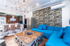 Самый стильный дом для проведения торжественных мероприятий. (№13). 7 ст. Б. Фонтана. 2 уровня, 325 кв. м. общ. пл. 1 уровень: холл, каминный зал с зимним садом, плавно переходящий в кухню-студию -150 кв м, с/у. На кухне, в столовой и в гостиной - панорамное остекление с видом на ландшафтный дизайн. 2 уровень: 5 спален, 2 с/у, 4 террасы. Стильный авторский дизайн. Мебель и бытовая техника известных брендов. Участок 7 соток с беседкой на 40 человек, летней кухней и зоной барбекю. Отдельно стоящая сауна с комнатой отдыха. Большой бассейн (6.05х3.30х1.40) расположен под навесом. Поэтому вода остается комфортной прохладной температуры и купаться можно и в самый жаркий период дня. Возможность парковки шести автомобилей. Все удобства для роскошного и комфортного проживания и отдыха.
