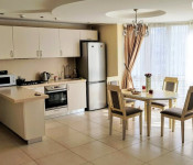 Квартира з якісним і дорогим євроремонтом (кафель, меблі, сантеніка виробництва -Італія). Квартира з величезною кухнею-гостьовою , спальнею з великим ліжком (вікна у двір), великий с/у з вікном-джакузі, душова кабіна, бойлер.