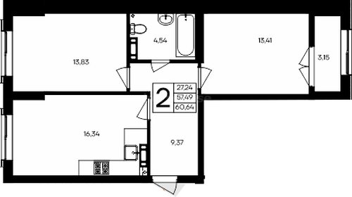 В продаже имеются квартиры в жилом комплексе "Семисчастье" премиум-класса. Общая площадь составляет 60,641 кв.м., при этом кухня - 16,34 кв.м. Высота потолков достигает 2,7 м.