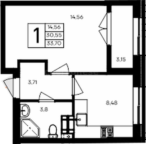 В продаже имеются квартиры в жилом комплексе "Семисчастье" премиум-класса. Общая площадь составляет 33,7 кв.м., при этом кухня - 8,48 кв.м. Высота потолков достигает 2,7 м.