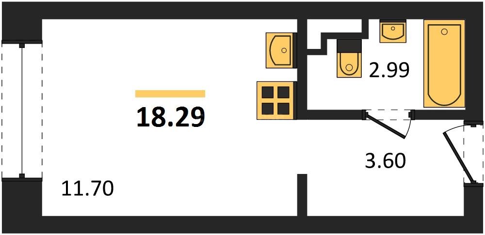 В продаже имеются квартиры в жилом комплексе "Олимпия 2.0" премиум-класса. Общая площадь составляет 18,29 кв.м., при этом жилая зона с кухней занимает 11,7 кв.м. Все окна выходят на одну сторону. В квартире есть лоджия и санузел. Высота потолков достигает 2.7 м.