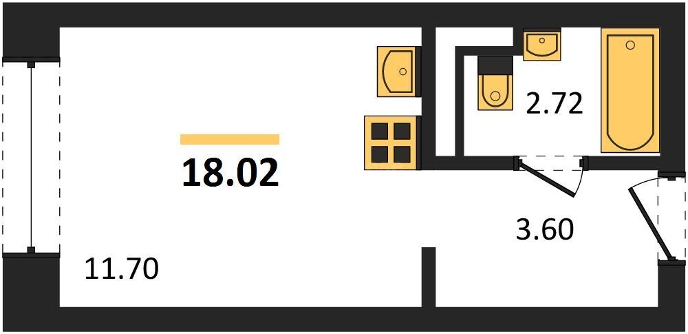 В продаже имеются квартиры в жилом комплексе "Олимпия 2.0" премиум-класса. Общая площадь составляет 18,02 кв.м., при этом жилая зона с кухней занимает 11,7 кв.м. Все окна выходят на одну сторону. В квартире есть лоджия и санузел. Высота потолков достигает 2.7 м.
