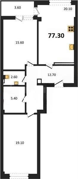 В продаже имеются квартиры в жилом комплексе "Аzimut" премиум-класса. Общая площадь составляет 77,3 кв.м., при этом кухня - 20,1 кв.м. Высота потолков достигает 2,8 м.