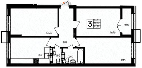 В продаже имеются квартиры в жилом комплексе "Семисчастье" премиум-класса. Общая площадь составляет 81,592 кв.м., при этом кухня - 13,5 кв.м. Высота потолков достигает 2,7 м.