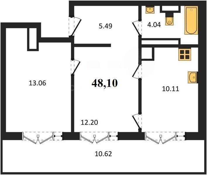 В продаже имеются квартиры в жилом комплексе "Олимпия 2.0" премиум-класса. Общая площадь составляет 48,1 кв.м., при этом жилая зона с кухней занимает 10,11 кв.м. Все окна выходят на одну сторону. В квартире есть лоджия и санузел. Высота потолков достигает 2.7 м.