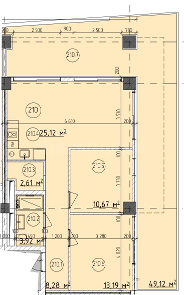 В продаже имеются апартаменты с полной отделкой, бытовой техникой, текстильным инвентарем и мебелью в жилом комплексе "Cosmos Stay" премиум-класса. Общая площадь составляет 112,91 кв.м., при этом кухня занимает 25,12 кв.м. Все окна выходят на одну сторону. В квартире есть лоджия и санузел. Высота потолков достигает 2.9 м.