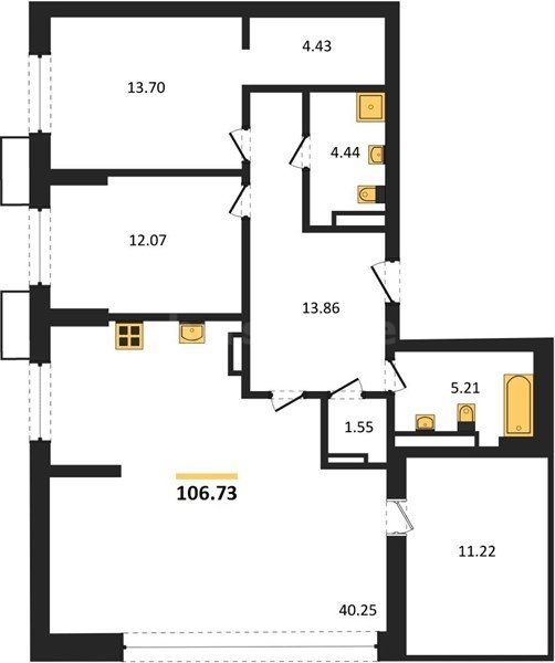 В продаже имеются квартиры в жилом комплексе "Семисчастье" премиум-класса. Общая площадь составляет 106,73 кв.м., при этом кухня - 40,25 кв.м. Высота потолков достигает 2,7 м.