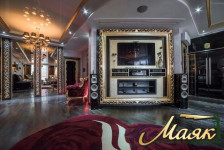 Дизайн интерьера выполнен в классическом стиле, всевозможные оттенки коричневого, шампани и благородная бронза во внутренней отделке подчёркивают роскошь и безупречный вкус собственника. А натуральное дерево придаёт ощущение уверенности, постоянства и уюта. Мебель от ведущих итальянских производителей Savio Firmino, Arca, и т.п. - элегантно дополняют единый ансамбль. В отделке стен использованы шелковые и жаккардовые обои ведущих английских фирм, штукатурка и натуральное дерево. Светильники от передовых производителей Италии и Испании. Дорогой текстильный декор окон и интерьера выполнен из натуральных тканей (производство Италия и Германия). Покрытие пола выполнено: 1 этаж - мрамор (Испания), художественный паркет; 2-этаж - дерево. Санузлы выполнены в плитке Сaesar (Италия).