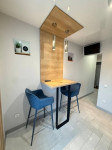 Площадь 46м2, спланирована как просторная кухня - гостиная (21м2) и отдельная уютная спальня.