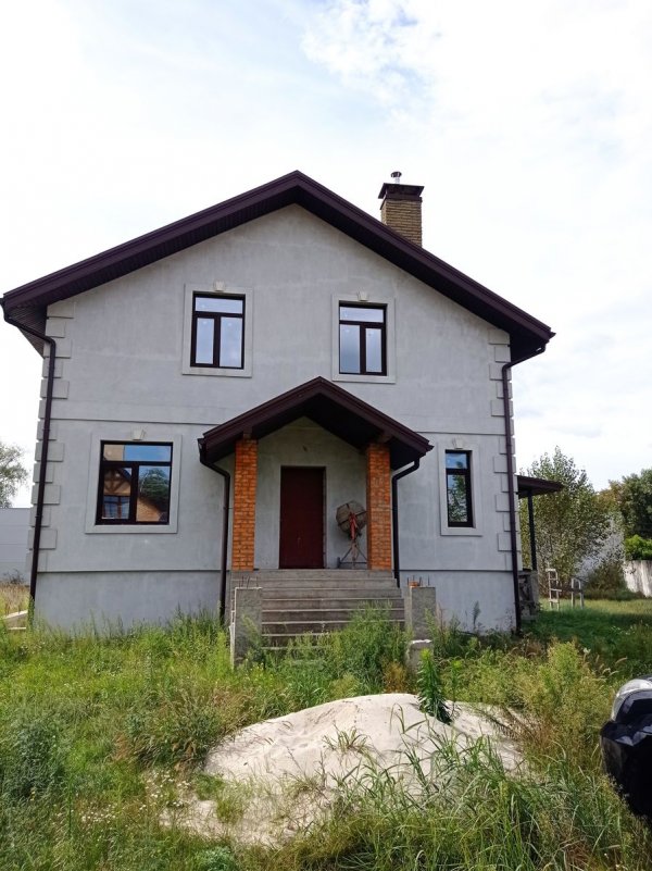 Найкраща якість забудови і в 10 хв ізди від Києва! Продається будинок в садовому товаристві, що знаходиться в 12 км від ст. м, Осокорки, Заг площа 264 кв. м, житлова площа 185 кв. м. Площа зем. ділянки - 12 соток (по документах, а по факту 15 соток). Матеріал - вогнетривка червона цегла. Фундамент- моноблоки. Чотири кімнати (по дві на кожному поверсі). Два сан. вузли. Надійна охорона і відео по всьому котед. містечку. Все робилось дуже якісно і надійно- для себе. Будинок двоповерховий з підвалом. Все по будинку зроблено (на 70%) - лише залишиться зробити косметичний ремонт. В будинок заведена електрика (9 квт), труби для води. Скважина 74 метри. На першому поверсі кухня- студіо 41 кв. м, є вихід на терасу. Вікна вищоі якості (шестикамерні з енергозберігаючим склом). Дах- металочерепиця з утеплюванням з під низу на 200 мм.