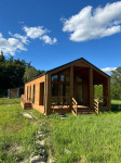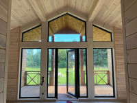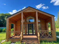 Внутрішнє оздоблення - фаль-брус товщиною 20 мм, натяжні ПВХ стелі, білий мат. Підлога - ламінат. Оздоблення санвузла - керамогранітна плитка. У вартість також входить душова кабіна, душова система, унітаз-компакт, тумба-умивальник, змішувач, електрична рушникосушарка, бойлер.