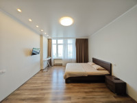 Квартира состоит из двух прихожих, спальни, зала 44 м², кухни-студии 28 м², санузла.
