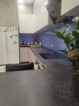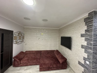 - Велика вітальня з підігрівом підлоги, великим диваном, скляним столом, великим телевізором, кондиціонером вбудованою кухнею та технікою.