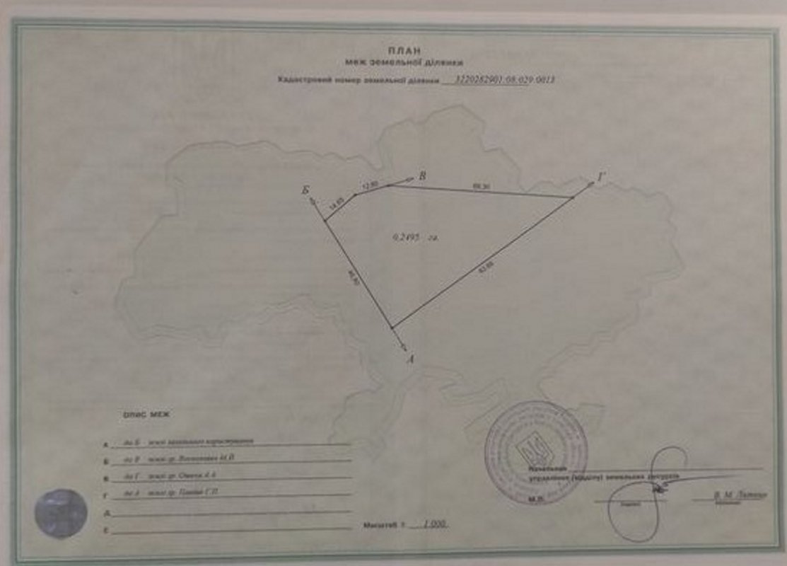 - Ділянка рівної форми 0,25 га, приватизована. Плюс 0,20 га, під ведення сільського господарства (фото додаються);