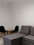 В квартире есть вся необходимая для жизни мебель - встроенная кухня, обеденный стол, стулья, двуспальная кровать и двуспальный диван, прикроватные тумбочки, комод, зеркальный шкаф-купе.