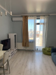 8 этаж, студия, 33 кв. м, все новое, бойлер (хотя в доме есть своя котельная), эл. плита с духовкой, тёплый пол, кондиционер, микроволновка, вытяжка над плитой, стиральная машина, мебель, квартира полностью оборудована.