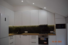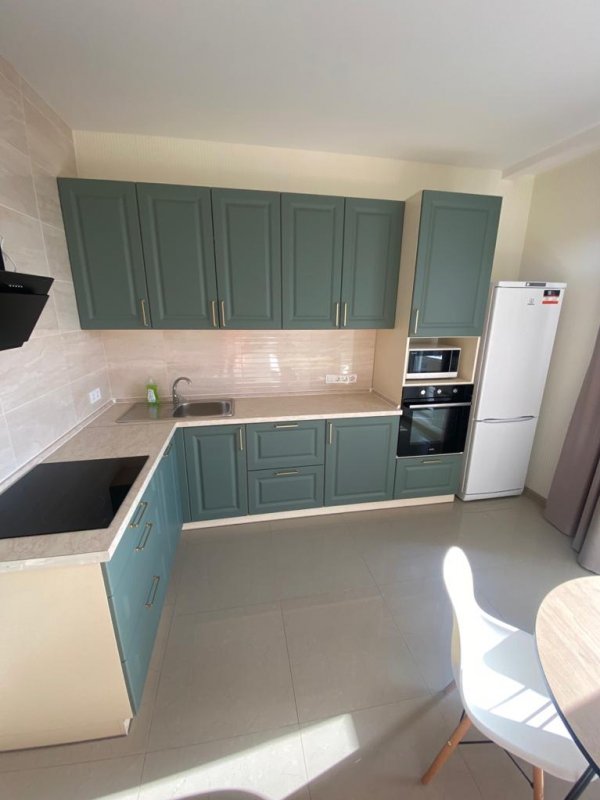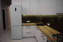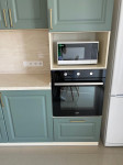 - Вбудована техніка: холодильник, посудомийна машинка, духова шафа, варильна поверхня, мікрохвильовка.