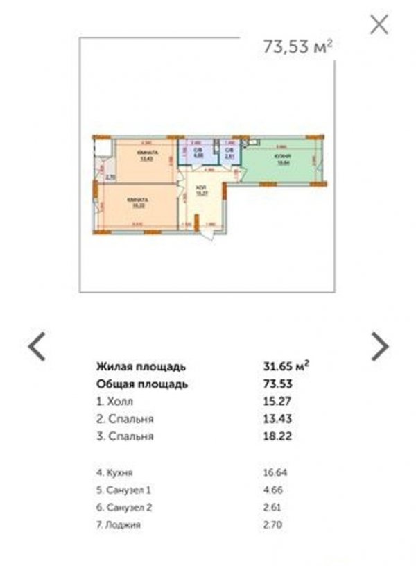 51 Жемчужина 22 этаж 45 кв метров