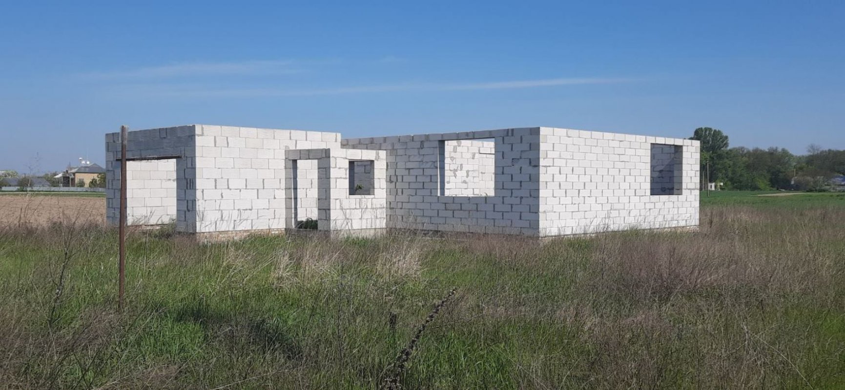 Будинок з газобетону, утеплений пінопластом, стяжка полу утеплена пінопостіролом. Міжповерхове перекриття з дерева. Всі дерев'яні елементи оброблені протигрибковими та протипожежними проникаючими рідинами. Будинок будувався по стандартах (арматура кожний четвертий ряд та додатково в пройомах, залізобетонні армопояси між поверхами та під крівлею).