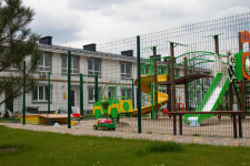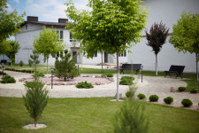 На території комплексу: паркова зона, сучасні дитячі та спортивні майданчики, бювет.