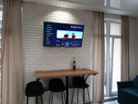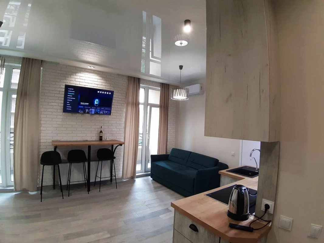 Квартира з капітальним ремонтом, заг пл 52м, кухня-студія і окрема спальня, скрізь є двері, повна комплектація меблями і побутовою технікою, включаючи кондиціонер і посудомийку, духовка, нове двоспальне ліжко і диван в студії, з/в поєднаний, облицьований - ванна, індивідуальний лічильник на опалення, ліфт працює завжди (є генератор), середній поверх 9/24, в будинку є підземний паркінг-сховище.