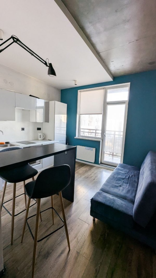 Удобная планировка: студия и отдельная спальня, совмещенный санузел.