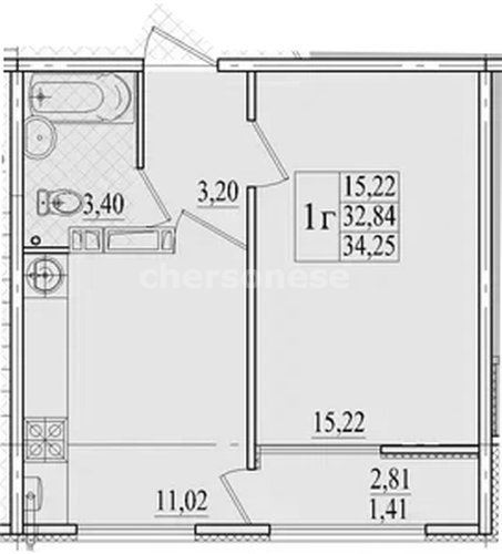 В продаже имеются квартиры в жилом комплексе "Александрия" комфорт-класса. Общая площадь составляет 34,252 кв.м., при этом кухня - 11,02 кв.м. Высота потолков достигает 2,7 м.