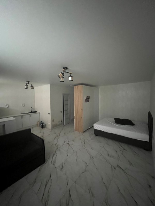 Зроблений ремонт для можливого проживання як в 1 кім. квартирі: санвузол сумісний з душ-кабіною, кухня відкрита, поли з підігрівом, 2 електробатареї, вай-фай, грати на вікнах, цокольний поверх 9-поверхового нового будинку. Деталі за телефоном.ще
