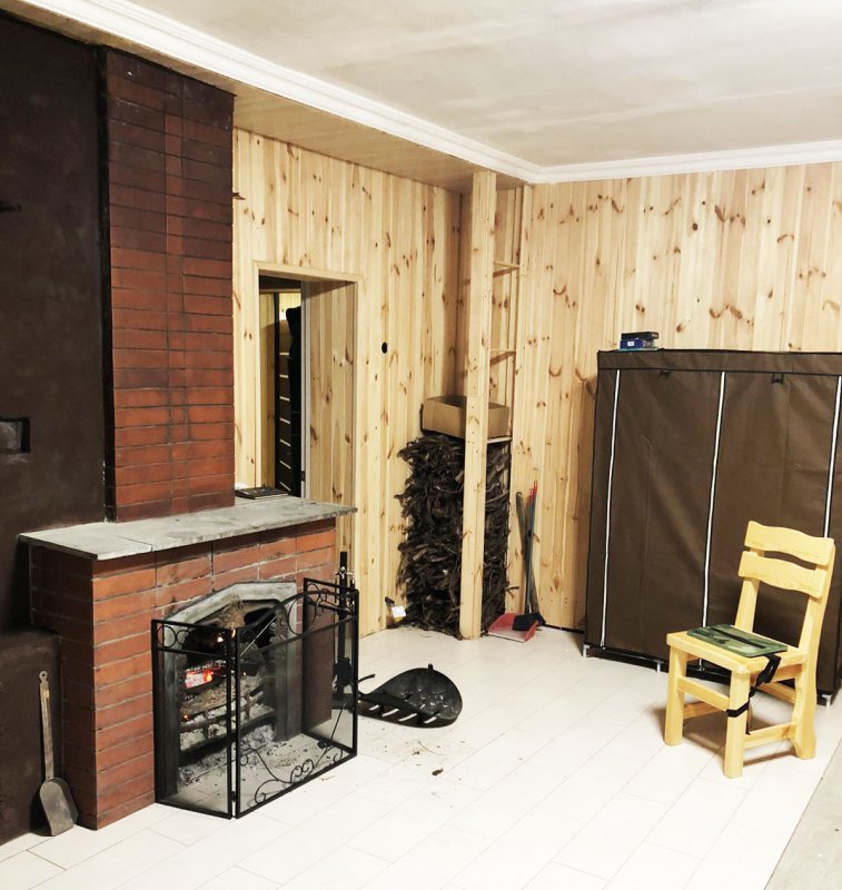 На первом этаже большая комната с действующим камином.