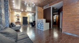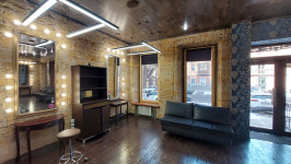 Фасадный вход. Большой зал на четыре рабочих места. Отдельный кабинет.