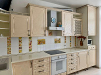 Кухня — МДФ фарбований, кам’яна стільниця та мийка, встановлено фільтр зворотного осмосу.