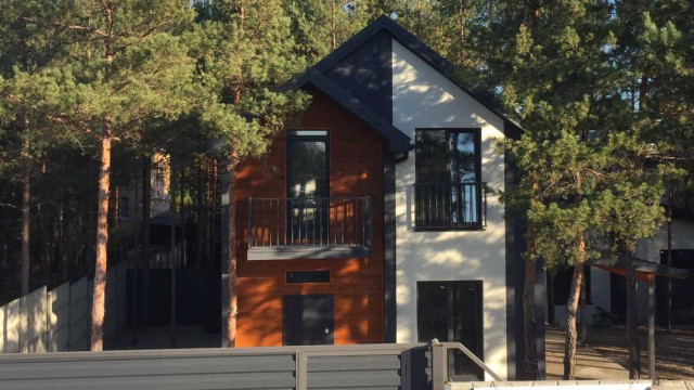 ВЛАСНИК Дарницкий р-н. Осокорки. Метро "Славутич". С\Т "Злагода". Завозите мебель в новый дом!!! Современный дом в Скандинавском стиле! Модный дизайн фасада! Дом находится не далеко от метро "Славутич" (4 км.), на берегу озера (свой пляж, беседка, рыбалка с участка). Через дорогу еще одно озеро. С двух балконов шикарный вид! Нет шума и городской суеты. Место --одно из лучших в Осокорках. Соседи живут круглогодично. Рядом новые, хорошие постройки. Школы и садики совсем рядом. Дорога - асфальтирована. Площадь дома - 130 кв.м, площадь участка - 6,2 сот, плюс 2 сот прибережная зона. На первом этаже расположены: прихожая, холл, спальня 18 кв.м, санузел, большой зал-кухня на 29 кв.м, с выходом на террасу 19 кв.м, бетонная лестница на второй этаж. На втором этаже - 2 спальни по 15 кв. м. с выходом на большой балкон 19 кв. м.с видом на озеро, и одна - 20 кв.м. из которой также есть выход на видовой балкон на озеро. А также на втором этаже расположен санузел, коридор и лестница на чердак. Фундамент -лента на монолитной подушке накрыта плитой. Стены - из теплого пеноблока -300 мм, покрыты минватой 100 мм. Крыша утеплена минватой 200 мм и укрыта фальцем (не металочерепица). Свет заведен в дом 10кВт (три фазы). Выведена канализация, которая сведена в большую выгребную яму с дренажным полем, водостоки выведены в дренажные кольца, разведены дымоходы и вентиляция. Скважина 67 м с хорошей водой. Предоставляем рассрочку, кредит, а также делаем полный ремонт под завоз мебели по дизайнпроекту. Предложение от собственника. ще