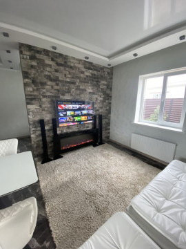 ВЛАСНИК Дом построен в 2019 году. Внутренняя отделка в 2020 году в ноябре месяце. На 5 сотках расположены дом 117 квадратов, терраса с лайнж зонной и бассейном с подогревом воды. На территории посажены голубые ели и другие вечно зеленые. На первом этаже кухня студия с зоной отдыха, спортзал, ванная комната и котельня. На втором этаже полноценные три спальни, гардеробная, ванная комната. В дом заведено 25 киловатт, счетчик день ночь. По всем комнатам установлены кондиционеры.