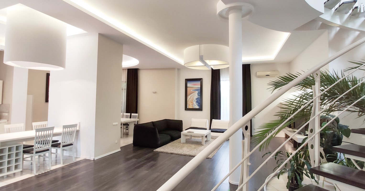 Будинок подобово в стилі хай-тек із сауною, басейном, 5 спаленьОренда будинку, побудованого за проектом одного з найвідоміших архітекторів України, принесе Вам справжнє задоволення та море незабутніх вражень. Будинок 5 спалень, 325 кв. м. 2 поверхи, кухня-вітальня, 3 санвузли, окремий банний комплекс, 4 паркомісця у дворі, альтанка на 40 осіб, басейн з 1 червня до вересня включно. Відмінне місце розташування: поряд 6-а Фонтану, до моря (пляж Аркадія) - 10 хв. на машині, центр – 20 хв. на машині. Банний комплекс, що окремо стоїть: хол, міні кухня, зона відпочинку, банна кімната, душова, з/в. Літня зона відпочинку: альтанка на 40 осіб, літня кухня, барбекю. Паркування: 4 машиномісця основних + 2 додаткові. Усього 6 кімнат, з них 5 спалей. Проект та авторський нагляд - Бєліков В. Ціна на добу залежить від кількості осіб та кількості днів проживання. Під час проведення розважальних заходів – діє індивідуальний тариф. Можливо з дітьмиТак Холодильник Духовка Пральна машина Інтернет Wi-Fi Фен Праска Прасувальна дошка Телевізор Кондиціонер Ванна Душова кабіна Сауна Гараж Басейн Тип об'єктуБудинок Id оголошення107973 Оголошення додано12.07.2023 Оголошення оновлено25.04.2026