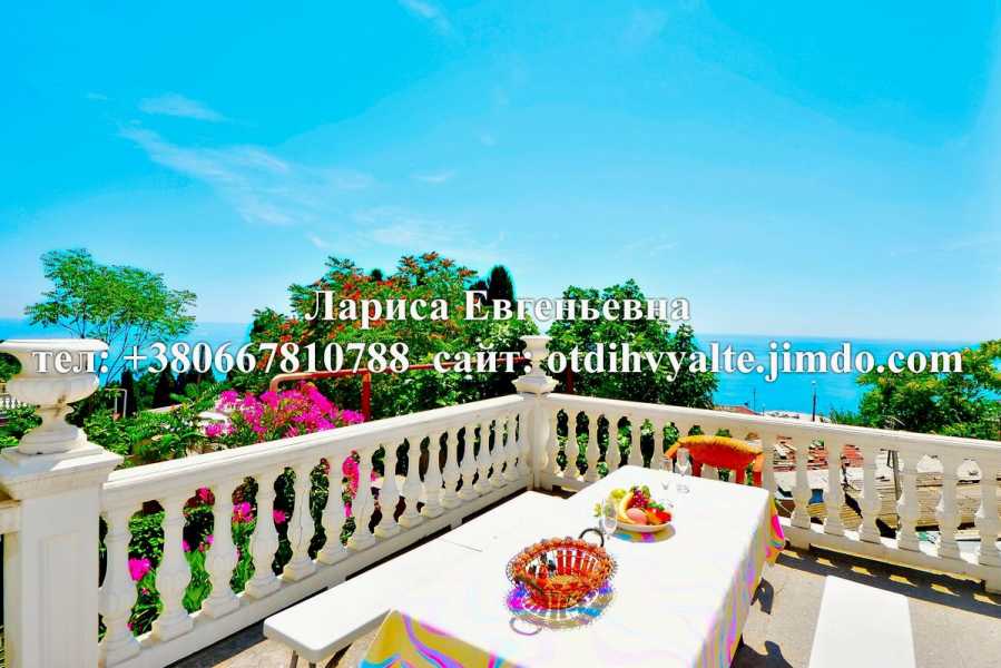 2 комн. дом с видовой беседкой над пляжем3 кімн. будинок до 6 осіб, вул. Дражинського 33, на Масандрівському пляжі, до моря – 1 хв, до набережної Ялти - 5 хв. пішки, 2 кімнати з видом на море, 3 двоспальні ліжка і диван, 3 тв. кабельне, Wi-Fi, велика обладнана кухня-студія, газ. плита, мікрохвильовка, двоконтурний котел, гаряча вода цілодобово, сан. вузол – ванна, пральна машина, 2 кондиціонери, майданчик з видом на море і меблями для відпочинку, хазяйський мангал, парковка машини на вулиці або стоянці, що охороняється. можливий трансфер з Сімферополя, Керчі до місця проживання або зустрічаємо на автовокзалі в Ялті ціна будинку: 40-150 $ / добу, діюча ціна на поточний місяць на моєму сайті, можливості торгу по телефону або E-mail, ціни на свята уточнюйте, докладний опис і інші варіанти житла на сайті: Ялта Лариса Євгенівна, адресу мого сайту дивись на водяній рядку на фотографіях квартири. Контактні дані: МТС Росія +79787387537 Life UA +380635239585 http://vk.com/id206499889 Скайп: nedorogoj_otdih_v_yalte E-mail: otdihvyalte@gmail.com інші варіанти житла на моєму сайті: http://www.otdihvyalte.jimdo.com Ялта Лариса Євгенівна Можливо з дітьмиТак Холодильник Посудомийна машина Пральна машина Мікрохвильова піч Інтернет Wi-Fi Фен Праска Прасувальна дошка Телевізор Кондиціонер Ванна Душова кабіна Тип об'єктуБудинок Id оголошення56314 Оголошення додано16.06.2022 Оголошення оновлено06.04.2026