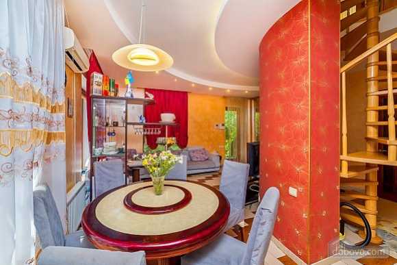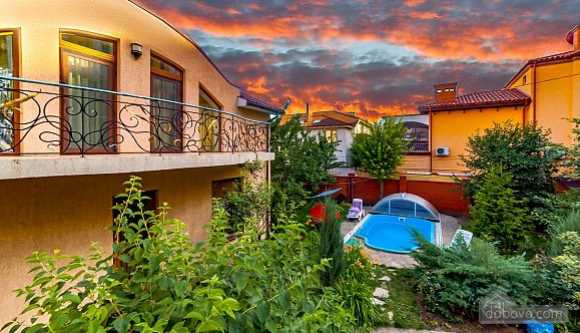 Большой комфортабельный дом 200 кв м общей площадью находится на улице Леваневского в 15 мин ходьбы от Моря! 3 спальни с кроватями и одна спальня с большим и удобным раскладывающимся диваном, гостиная 40 кв м, 2 санузла, 5 соток благоустроенный двор с зоной барбекю и открытым бассейном. Комфортных спальных мест для 10 гостей (с дополнительными для 11 гостей).