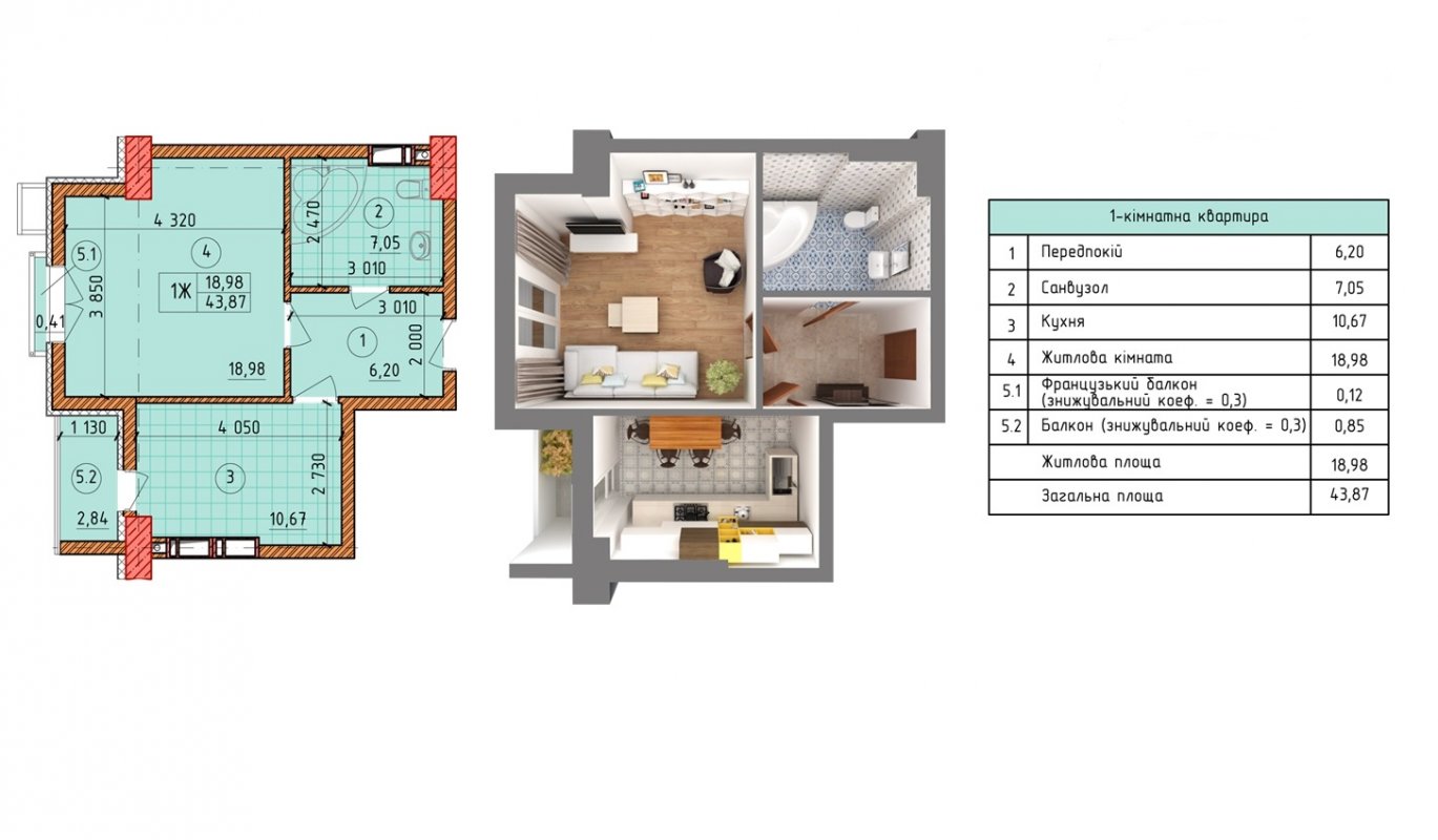 Площа44 м²