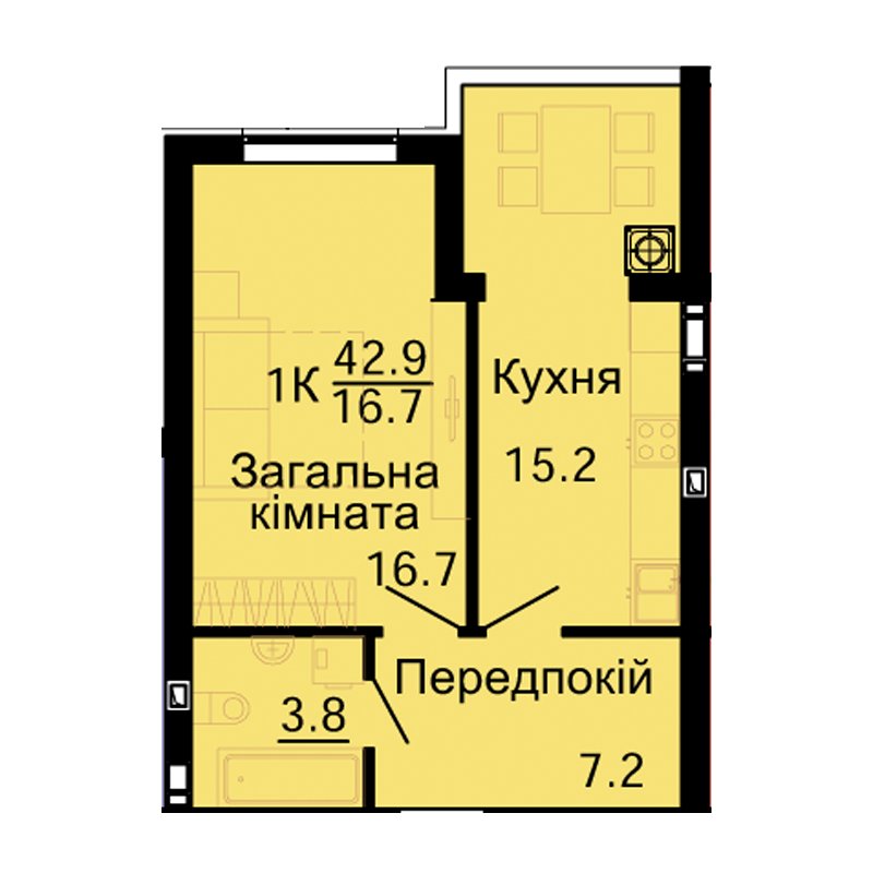 Площа43 м²